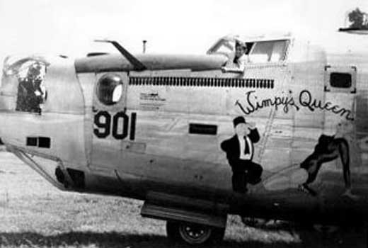| 42-50901 | YMCA Flying Service (copilot's side) and Wimpy's Queen (pilot's side)" | This plane was assigned to 2/Lt B.R. Shaw's crew when they arrived at Wendling early in 1945. At the request of the crew chief, Sgt Detty, the ship was named "The YMCA Flying Service." The crew, however, had planned to christen any ship permanently assigned to them with the name "Wimpy's Queen" in honor of Nerissa Shaw, Lt. Shaw's wife. ("Wimpy" was Lt. Shaw's nickname. His given name was Beverly and you either called him Ray or Wimpy but Never Beverly.) The compromise was to have the "YMCA Flying Service" name painted under the copilot's window and "Wimpy's Queen" under the pilot's window. After this plane was flown back to the US in June 1945, it may have been flown around the country as part of the Air Corps' effort to increase the sale of war bonds. See Wimpys Queen nose art See YMCA Flying Service nose art |