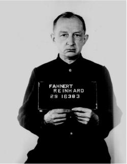 Fahnard was in charge of the German Security system with Luft IV and considering his rank, was on extremely intimate terms with both Captain Walter Pickhardt and Lt. Colonel Otto Bombach. His authority in the camp was a great deal more than his rank would have called for. Within the camp, he had a record of persecution, and violence and personally led all searches of the camp area. It was always believed by me that these three men, Bombach, Pickhardt and Fahrnard were ardent Nazis. I was so informed on may occasions by friendly German personal. The last thing I recall about Sgt. Fahnard was being threatened by him with shooting, for interfering with the distribution of Red Cross Parcels (on the occasion of leaving Stalag Luft IV, to begin the march back to the western front).