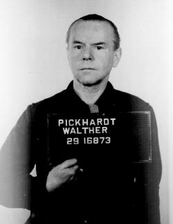 It was reported by friendly German personal that during his many speeches to guards, he stated it would be better of the POW's were all shot, then they would not have to feed them; that POW's were swine and not to be treated as men. He was always extremely abusive verbally. Pickhardt was one of the most fanatical Nazis I ever encountered in Germany. He had the complete confidence of the camp Commander, and the regime of terror seemed to be part of a plan carefully mapped out by both Bombach and Pickhardt."